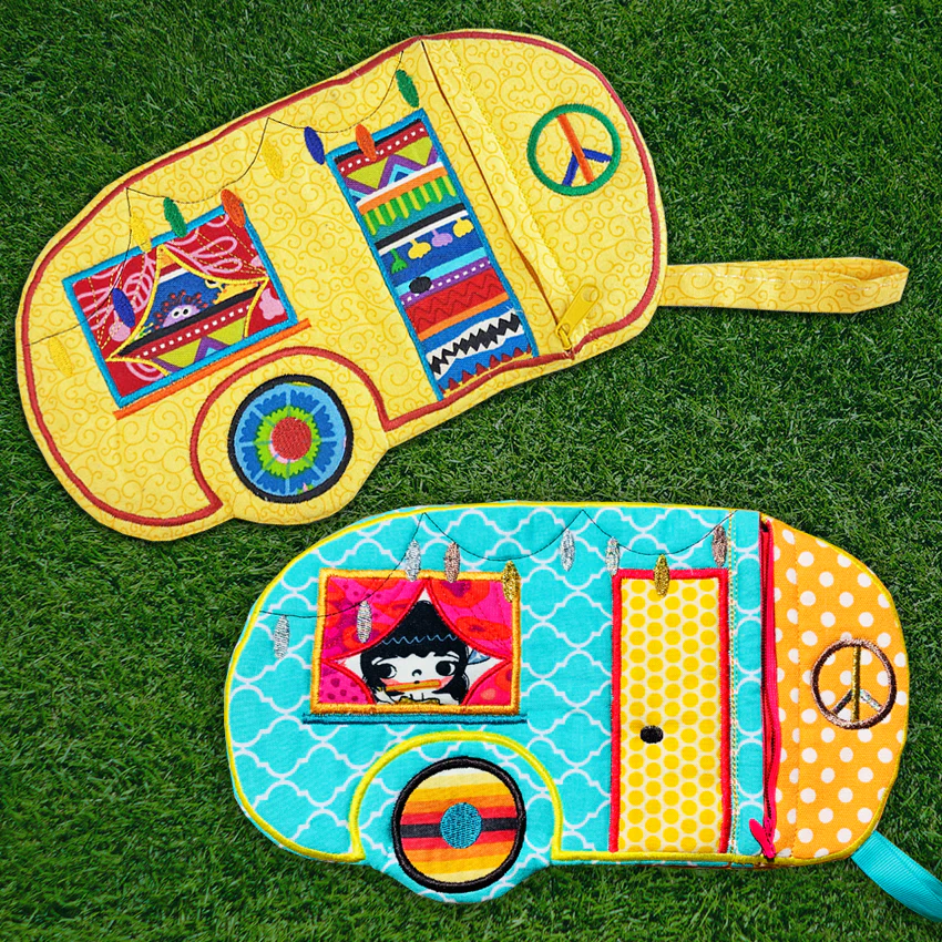 A cute little caravan purse ITH in the hoop machine embroidery design. The embroidery pattern is made for the 5x7, 6x10, 7x12 and 9.5x14 hoops. Requires one hooping and the purse is finished. The purse is lined and there are absolutely no raw seams.