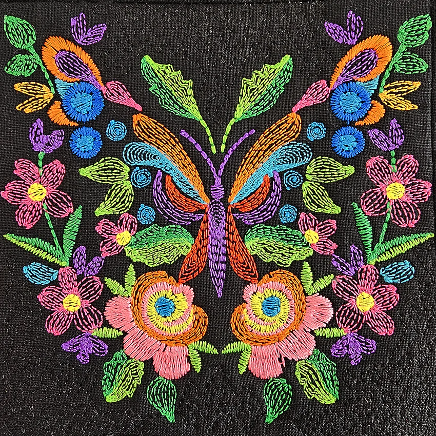 This Floral Butterfly Cushion can be made in the 5x5, 6x6, 7x7 or 8x8 size hoop. All sizes are included with your purchase.
