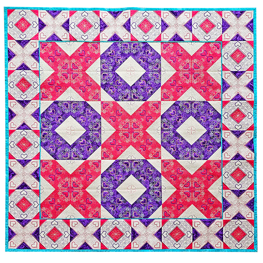 This beautiful Hugs & Kisses quilt embroidery Valentine's design would make a great gift for Valentine's Day for your significant other. It is a great ITH embroidery design for beginners and seasoned sewers. There are two different blocks including the full block and a quarter block to make the larger image. You can mix and match and use these blocks however you'd like to make a quilt.