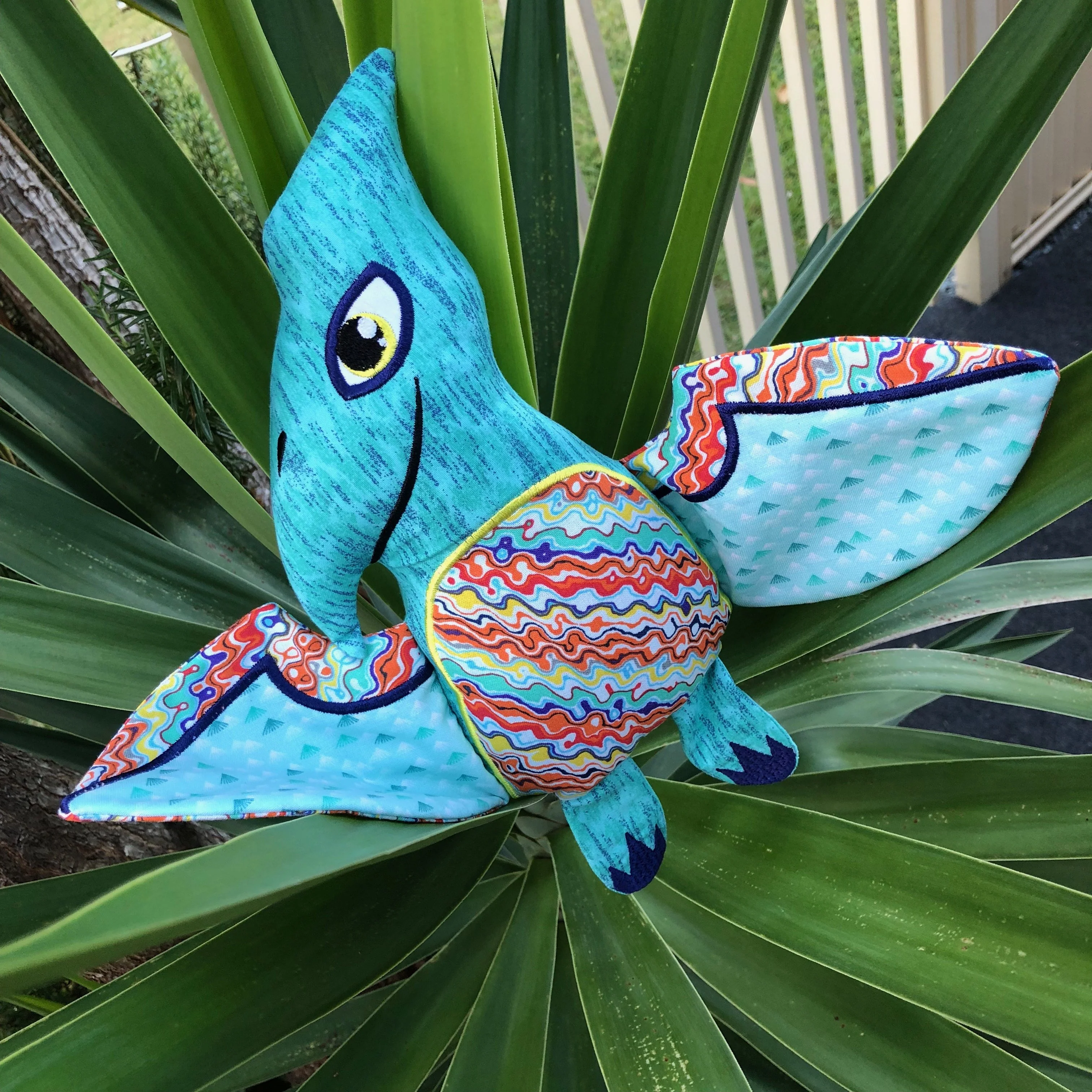 Cute stuffed pterodactyl dinosaur toy ITH in the hoop 5x7, 6x10 and 7x12 machine embroidery design. Â Very quick and easy to make.Â